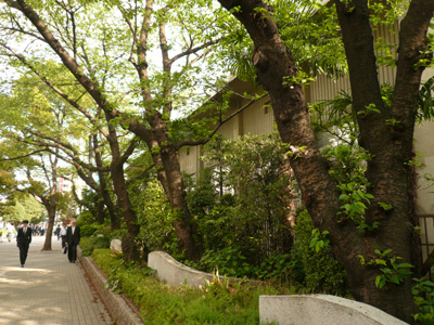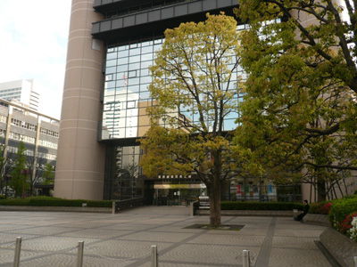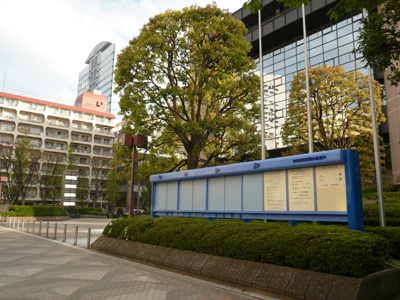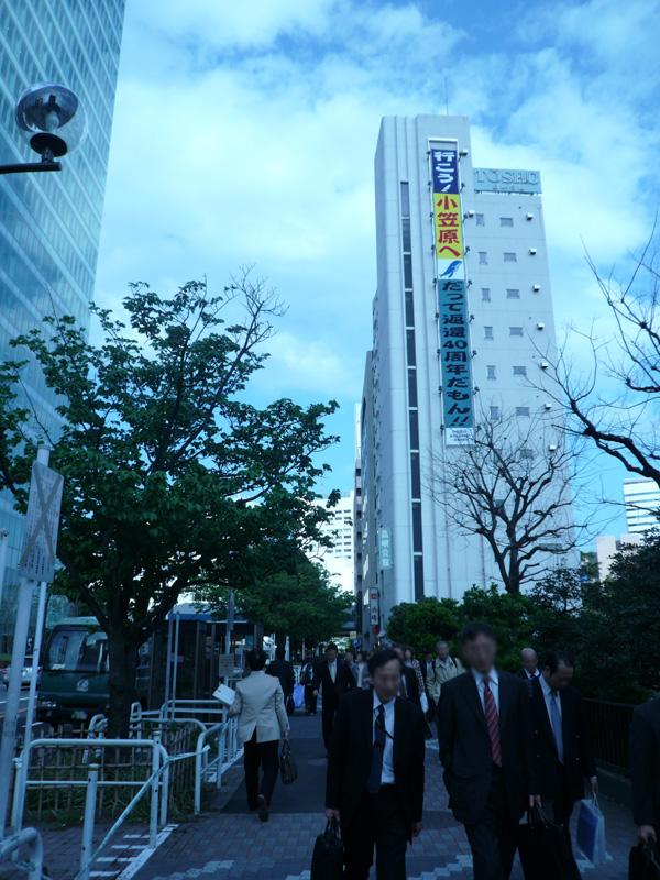 芝離宮の先は島嶼会館。小笠原の垂れ幕が目印です。
